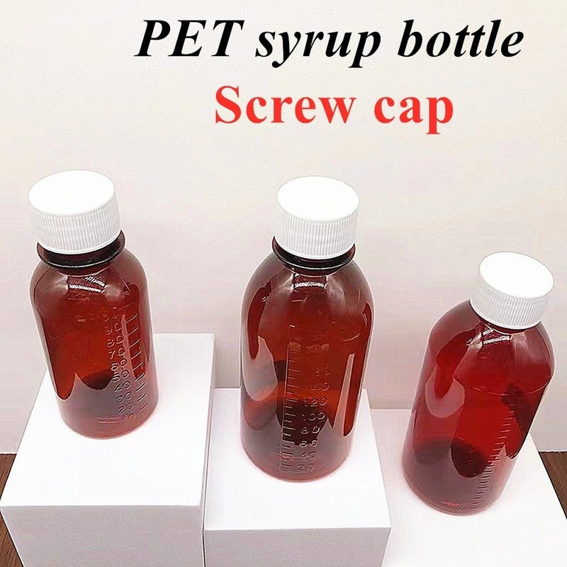 | اسم المنتج | 3OZ 4OZ 5OZ 120ml 150ml حاوية شربة بي تي شربة السعال اللون الأحمر دواء شفوي سائل الزجاجة البلاستيكية مع غطاء المسمار |
